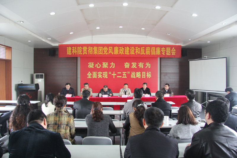 為貫徹落實集團(tuán)公司2015年黨風(fēng)廉政建設(shè)及反腐敗會議精神,3月27日上午,院在四樓大會議室召開了貫徹集團(tuán)黨風(fēng)廉政建設(shè)及反腐倡廉專題會。院領(lǐng)導(dǎo)班子,管理部門正、副職、黨支部書記及各單位主要負(fù)責(zé)人49人參加了會議。院董事長、院長項炳泉作重要講話。會議由紀(jì)委副書記李躍進(jìn)主持。