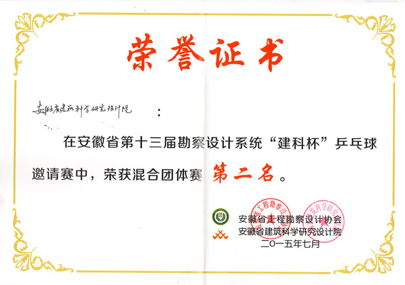 為加強(qiáng)我省勘察設(shè)計(jì)單位之間的交流,增進(jìn)相互了解和合作,豐富勘察設(shè)計(jì)行業(yè)文化生活,由安徽省工程勘察設(shè)計(jì)協(xié)會(huì)主辦,我院承辦的安徽省第十三屆勘察設(shè)計(jì)系統(tǒng)“建科杯”乒乓球邀請(qǐng)賽于2015年7月4—5日在省體育館全民健身活動(dòng)中心綜合館舉行。院董事長(zhǎng)、院長(zhǎng)項(xiàng)炳泉,黨委副書記、紀(jì)委書記周湃親自蒞臨賽場(chǎng)為我院乒乓球運(yùn)動(dòng)健兒加油助威。