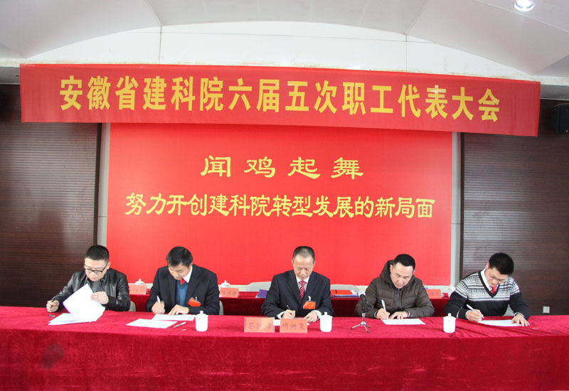 2017年2月26日,安徽省建筑科學研究設計院六屆五次職工代表大會在院四樓大會議室隆重召開。參加會議的43名職工代表和部分列席代表、特邀代表濟濟一堂,共商發(fā)展大計。大會聽取并審議通過了《院長工作報告》、《2016年財務工作報告和業(yè)務招待費使用情況報告》,審議通過了經濟技術責任制實施辦法等相關管理制度;會議表彰了2016年度院先進集體和先進個人,簽訂了2017年度經濟技術責任狀、支部目標管理責任書。集團公司副總經理、總工程師戴良軍蒞臨會議并講話,集團公司黨委工作部主任徐文聯(lián)出席會議并就民主測評、領導干部評議和后備干部推薦等事宜提出部署要求,集團工會副主席吳曉伍應邀出席會議。