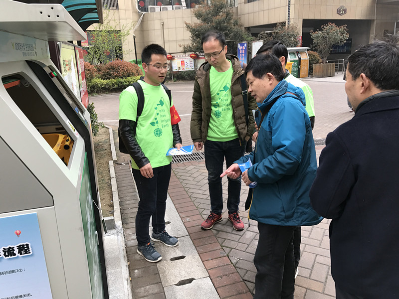 “青春環(huán)衛(wèi)”之綠色家園——3月25日上午,安徽建科青年志愿者們走進合肥市首家引入智慧垃圾分類系統(tǒng)的梅園公寓小區(qū),開展“垃圾智慧分類”宣傳活動。智慧垃圾分類系統(tǒng)通過運用互聯(lián)網(wǎng)和自動化技術(shù),可“智慧”引導(dǎo)居民的垃圾分類投遞行為,并自動計算環(huán)保積分,實現(xiàn)線上、線下同步兌換實物獎勵?;顒又?,青年志愿者們向小區(qū)居民宣傳講解垃圾分類的重要性,普及生活垃圾分類知識,并現(xiàn)場指導(dǎo)居民如何使用智慧垃圾分類系統(tǒng),引導(dǎo)居民自覺參與垃圾分類,積極改善居住環(huán)境。此次活動得到了梅園公寓小區(qū)老年志愿者的大力支持。