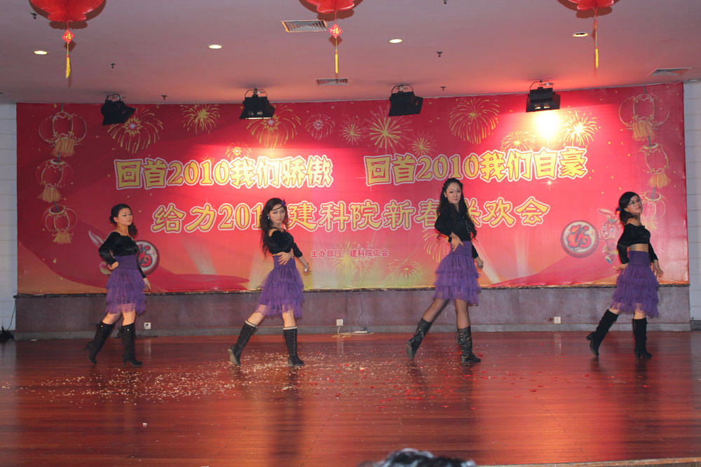 聯(lián)歡會(huì)上,由院職工自編自演的節(jié)目精彩紛呈,樂器獨(dú)奏、獨(dú)唱、合唱、相聲、小品、舞蹈應(yīng)有盡有。歌曲《北京一夜》、《美麗家園》、《謝謝你的愛1999》、《分站歡迎你》,舞蹈《西域風(fēng)情》、《QQ表情串燒》、《百老匯爵士舞》等精彩節(jié)目盡情抒發(fā)著我院職工對(duì)收獲的喜悅、對(duì)和諧的謳歌和對(duì)未來的憧憬。穿插在表演出中的世博知識(shí)競猜環(huán)節(jié)更是令全體職工歡聲笑語此起彼伏,整個(gè)會(huì)場呈現(xiàn)出一派溫馨和睦、親似家人的和諧氛圍。