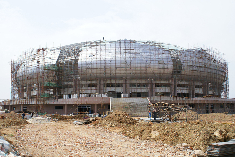 (上圖為池州體育館施工現(xiàn)場(chǎng))