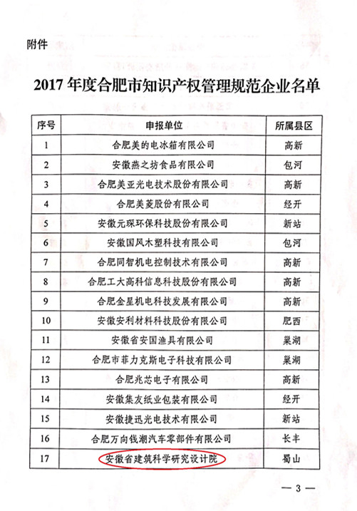 喜訊—我院入選“2017年度合肥市知識(shí)產(chǎn)權(quán)管理規(guī)范企業(yè)名單”