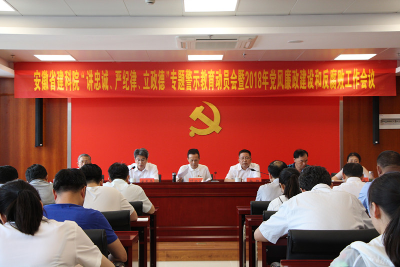 會上,副院長李躍進(jìn)傳達(dá)了集團(tuán)公司黨委書記趙時運在集團(tuán)“講忠誠、嚴(yán)紀(jì)律、立政德”專題警示教育動員暨2018年黨風(fēng)廉政建設(shè)和反腐敗工作會議上的講話;副院長安東兵部署了院“講忠誠、嚴(yán)紀(jì)律、立政德”專題警示教育方案;紀(jì)委書記程鋼傳達(dá)了集團(tuán)公司紀(jì)委書記宋志華在集團(tuán)“講忠誠、嚴(yán)紀(jì)律、立政德”專題警示教育動員暨2018年黨風(fēng)廉政建設(shè)和反腐敗工作會議上的講話,并布置了院2018年黨風(fēng)廉政建設(shè)和反腐敗工作;副院長郭楊通報了徽商集團(tuán)腐敗窩案情況及其教訓(xùn)警示。最后,院黨委書記、董事長、院長項炳泉作了動員講話。