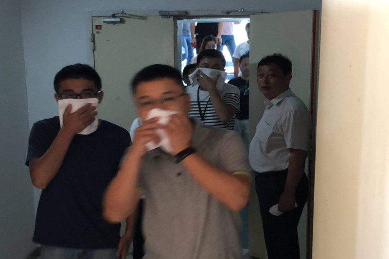 會(huì)上,蜀山消防大隊(duì)教官為大家詳細(xì)講解了高層消防安全知識(shí)及各類滅火器材使用方法,并通報(bào)了近期發(fā)生的重大火災(zāi)等情況。隨后,組織建科大廈全體人員開展了火災(zāi)應(yīng)急疏散演練。15:20分,消防控制室值班員接到消控主機(jī)顯示12層南側(cè)走廊感煙報(bào)警,樓層巡崗員查看現(xiàn)場(chǎng)情況后,立即向上級(jí)請(qǐng)求啟動(dòng)火災(zāi)應(yīng)急預(yù)案。院黨委委員、副院長(zhǎng)、此次演練總指揮李躍進(jìn)下達(dá)指令,啟動(dòng)火災(zāi)應(yīng)急預(yù)案,宣布疏散命令。疏散現(xiàn)場(chǎng),各層人員在本樓層安全員指揮引導(dǎo)下,用濕毛巾捂住口鼻、蹲姿靠右從兩側(cè)消防樓梯有序撤離到建科大廈北廣場(chǎng)疏散現(xiàn)場(chǎng)。演練過程中,指揮人員沉著冷靜,廣大員工反應(yīng)迅速;在場(chǎng)的398名人員全部安全撤離,圓滿的完成了預(yù)定演練。