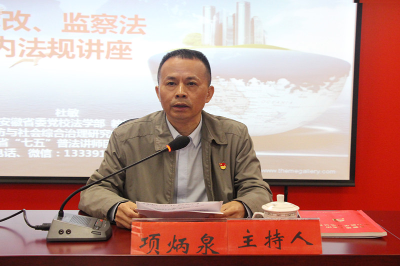 10月19日下午,院黨委召開中心組(擴(kuò)大)學(xué)習(xí)會,省委黨校法學(xué)部教授杜敏應(yīng)邀作了《憲法》、《監(jiān)察法》和黨內(nèi)法規(guī)專題報(bào)告。黨委書記、董事長項(xiàng)炳泉主持會議并講話。院領(lǐng)導(dǎo)班子成員、中層以上管理人員、各黨支部班子成員以及部分黨員共計(jì)100余人聆聽報(bào)告。