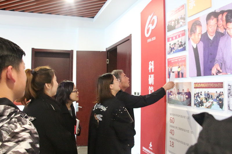 座談會后,團委副書記胡婷婷帶領(lǐng)各支部代表齊聚二樓展廳,集體參觀了建院六十周年圖片展。物管中心主任張強逐個展板為大家耐心講解,從主題形象篇、科研篇到發(fā)展篇、奮進篇等,進一步增強了大家對建院六十年來發(fā)展的認知??粗拱?,聽著講解,一顆顆更努力的種子在團員青年們心中萌發(fā)。