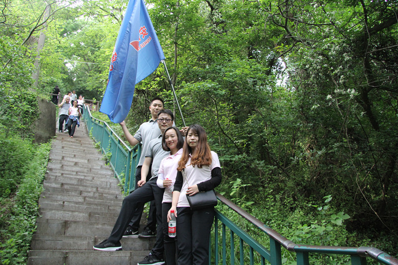 登山路上,歡聲笑語在團隊間蕩漾,大家不時駐足用手機拍照留下美好瞬間,遇到累的同事,大家相互攙扶,彼此照應,團結友愛、快樂運動的場景在活動中不時出現(xiàn)。登頂一刻,院旗飄揚,登頂同志忘卻疲勞,興奮地在山頂合影留念。