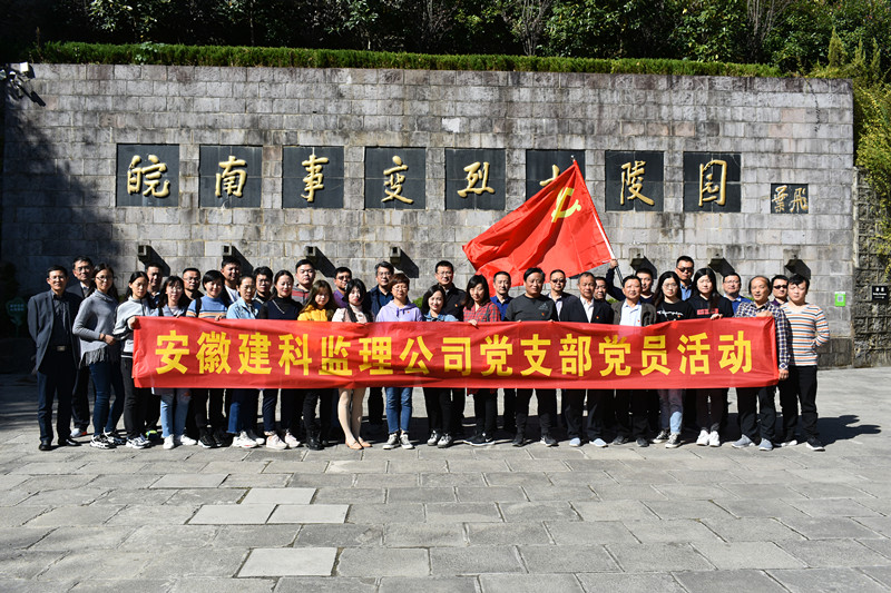 為慶祝新中國成立70周年,深入貫徹落實(shí)黨的十九屆四中全會精神,進(jìn)一步激發(fā)廣大黨員和入黨積極分子的愛國熱情,11月15日-16日,建科監(jiān)理公司組織全體黨員、入黨積極分子等39人赴安徽涇縣開展革命傳統(tǒng)教育,緬懷革命先烈,重溫入黨誓詞。