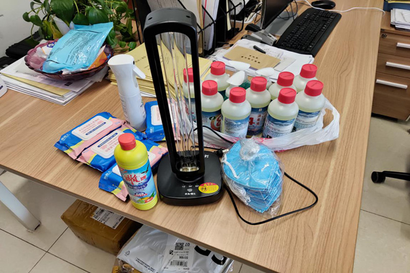 一、主動(dòng)請(qǐng)纓,不等不靠,科學(xué)防控。2020年1月28日,大年初四,雖然人們還在享受著正常的春節(jié)假期里,但隨著新型冠狀病毒肺炎疫情快速發(fā)展,全國(guó)范圍里口罩、消毒液的防疫物資供應(yīng)緊張,直接影響到所里的疫情防控復(fù)工復(fù)產(chǎn)工作,正在天長(zhǎng)老家過(guò)年邵小慧同志主動(dòng)出擊,跑遍周邊鄉(xiāng)鎮(zhèn)小藥店采購(gòu)口罩、消毒液等防疫防控物資,不辭辛勞,一趟一趟螞蟻搬家似的搶購(gòu)了3000只口罩、40瓶免洗消毒凝膠、10瓶84消毒液,線下采購(gòu)的同時(shí)在網(wǎng)上采購(gòu)到了2只醫(yī)用測(cè)溫槍、5支紫外線滅菌燈及一次性手套、噴壺等防疫物資,由于疫情影響,物流不暢,邵小慧同志與商家客服反復(fù)溝通,終于在2月24日前全部到位,為疫情防控提供了有力保障。