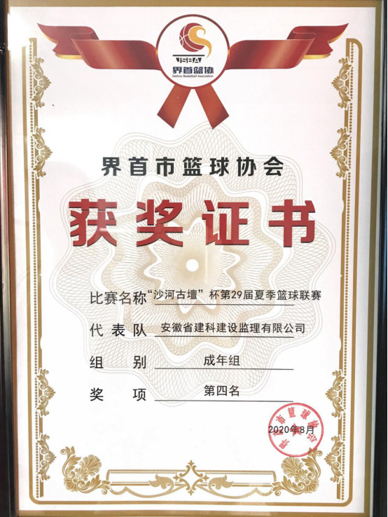 建科監(jiān)理公司喜獲界首市第29屆夏季籃球聯(lián)賽第四名