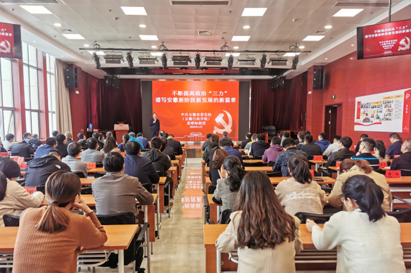 安徽省委黨校副校長、黨委委員袁維海教授應邀作題為《不斷提高政治“三力”,譜寫安徽新階段新發(fā)展的新篇章》專題報告。袁校長首先從深入學習貫徹習近平總書記關于加強黨的政治建設重要論述出發(fā),結合新一輪深化“三個以案”警示教育,詮釋了提高“政治三力”的主要內容和要求。切實增強政治意識,善于從政治上看問題,善于把握政治大局,不斷提高政治判斷力、政治領悟力、政治執(zhí)行力。用一組組數(shù)據(jù)和生動案例,展示了反腐敗斗爭的長期性、艱巨性、嚴峻性、復雜性。結合長三角一體化、我省經(jīng)濟形勢分析,就如何堅持創(chuàng)新發(fā)展、協(xié)調發(fā)展、綠色發(fā)展、開放發(fā)展、共享發(fā)展,實現(xiàn)“十四五”規(guī)劃和二〇三五年遠景目標,形成推動建設新階段現(xiàn)代化美好安徽的強大合力進行了全面的分析和解讀。