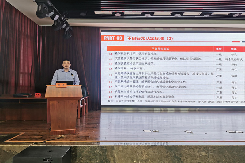 為落實院七屆五次職代會精神,引導員工增強職業(yè)道德意識,恪守“誠信為本、操守為重”的行為準則。4月30日上午,二站在23樓大會議室舉辦職業(yè)道德與行為準則專題講座。二站各檢測部門負責人、項目負責人及三年內入職員工等110余人參加培訓。二站黨總支書記、站長劉林軍出席培訓會并作動員講話。培訓會由院人力資源部部長徐文正主持。