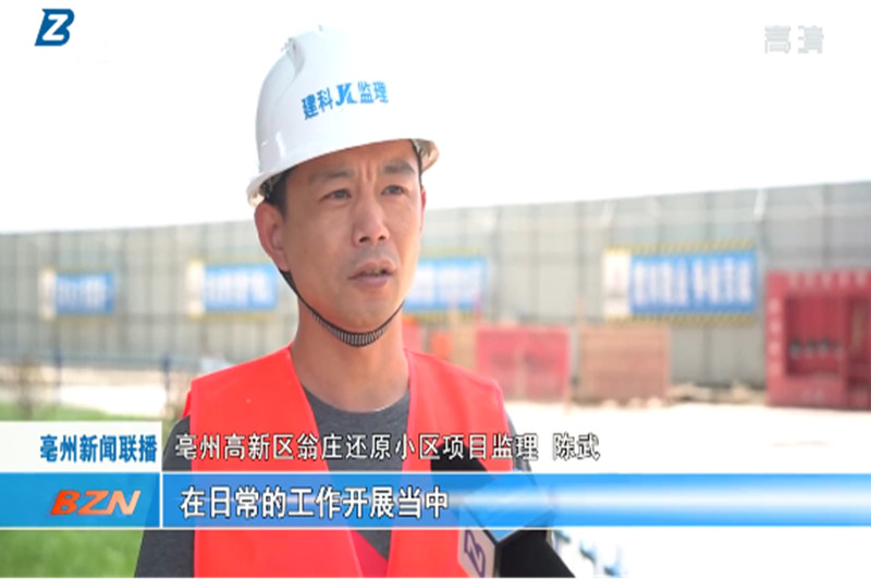 5月10日播出的亳州新聞聯(lián)播中,對亳州市獲國務(wù)院辦公廳督查激勵進行了報道。其間亳州新聞聯(lián)播電視臺來到棚戶區(qū)改造項目之一高新區(qū)“翁莊還原小區(qū)項目”,對項目施工和監(jiān)理人員進行采訪。建科監(jiān)理人員陳武在采訪中表示,在項目日常工作開展中,監(jiān)理機構(gòu)嚴格按照相關(guān)規(guī)范、驗收標準和國家相關(guān)規(guī)程,以多種手段進行質(zhì)量把控,確保工程建設(shè)順利推進。