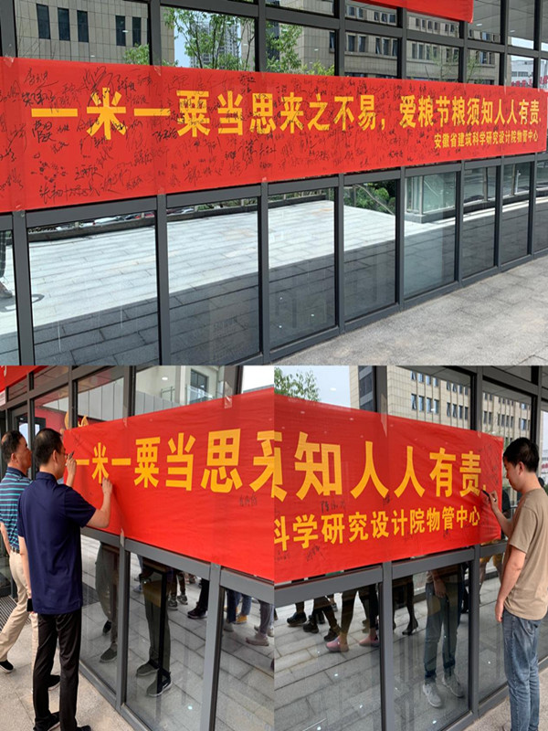 儀式現(xiàn)場(chǎng),在 “節(jié)約糧食、人人有責(zé)”橫幅上,大家踴躍簽名。