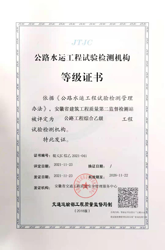 11月23日,從安徽省交通工程質(zhì)量安全管理服務(wù)中心傳來喜訊,二站順利通過公路工程綜合乙級等級評定。