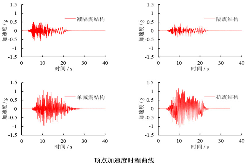 試驗(yàn)結(jié)果顯示:對(duì)于設(shè)置隔震支座的減隔震結(jié)構(gòu)與隔震結(jié)構(gòu),試驗(yàn)完畢后混凝土基本無裂縫出現(xiàn);拆除隔震支座后,試驗(yàn)?zāi)P烷_始出現(xiàn)裂縫,裂縫主要分布在梁柱節(jié)點(diǎn)區(qū)域。減隔震結(jié)構(gòu)與隔震結(jié)構(gòu)在峰值加速度0.64g的北嶺波作用下,最大層間位移角分別為1/287和1/353,頂點(diǎn)峰值加速度為0.57g和0.41g;而單減震結(jié)構(gòu)與抗震結(jié)構(gòu)在同一工況下的最大層間位移角達(dá)到1/137和1/52,頂點(diǎn)峰值加速度達(dá)到1.06g和1.17g。對(duì)比研究表明:減震外掛墻板與隔震支座能夠有效減輕混凝土開裂,同時(shí)顯著減小層間位移角和頂點(diǎn)峰值加速度。本次試驗(yàn)證實(shí)了減震外掛墻板與隔震支座的減隔震效果,為外掛墻板及隔震支座的推廣應(yīng)用提供了重要試驗(yàn)支撐,同時(shí)也為此類結(jié)構(gòu)的理論分析提供了現(xiàn)實(shí)依據(jù)。