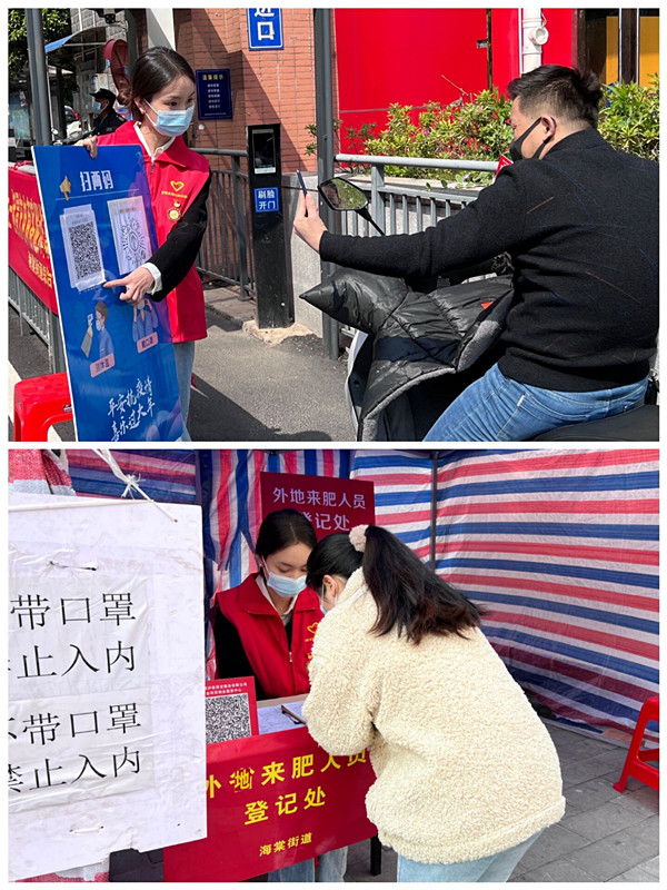 “請(qǐng)您出示一下行程碼、健康碼”“請(qǐng)您登記一下個(gè)人信息”,4月3日上午,在廬陽(yáng)區(qū)海棠街道荷塘社區(qū)金荷苑小區(qū)主入口處,一名忙碌在人群中的“紅馬甲”格外顯眼,她就是來(lái)自安徽建科黨政辦的青年黨員志愿者——趙童心,她正在積極協(xié)助社區(qū)人員開(kāi)展疫情排查防控工作。