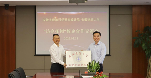 會(huì)后,校企雙方舉行了畢業(yè)生就業(yè)基地授牌儀式。安徽建筑大學(xué)黨委常委、副校長閔杰,就業(yè)工作處處長魏東,土木工程學(xué)院黨委書記王媛,環(huán)境與能源工程學(xué)院黨委書記戴前宏,環(huán)境與能源工程學(xué)院院長謝發(fā)之;建科院黨委委員、副院長、總建筑師安東兵,綠色低碳技術(shù)研究院院長沈念俊、人力資源部部長徐文正參加會(huì)議。