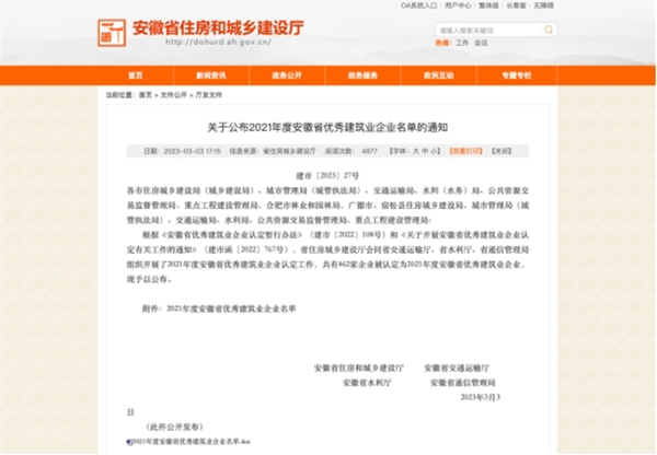 ?喜報(bào)!我院及子公司榮獲 “2021年度安徽省優(yōu)秀建筑業(yè)企業(yè)”