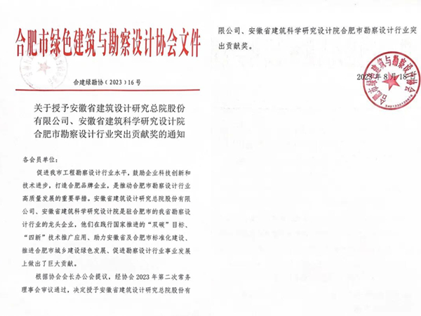 沖刺下半年 | 喜訊!安徽建科榮獲合肥市勘察設(shè)計(jì)行業(yè)突出貢獻(xiàn)獎(jiǎng)