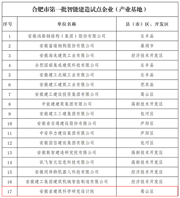 ?喜訊 | 安徽建科入選合肥市第一批智能建造試點企業(yè)(產(chǎn)業(yè)基地)