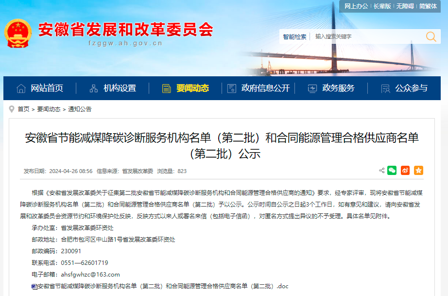 4月26日,安徽省發(fā)展和改革委員會(huì)發(fā)布安徽省節(jié)能減煤降碳診斷服務(wù)機(jī)構(gòu)名單(第二批)和合同能源管理合格供應(yīng)商名單(第二批)公示,安徽省建筑科學(xué)研究設(shè)計(jì)院成功入選。
